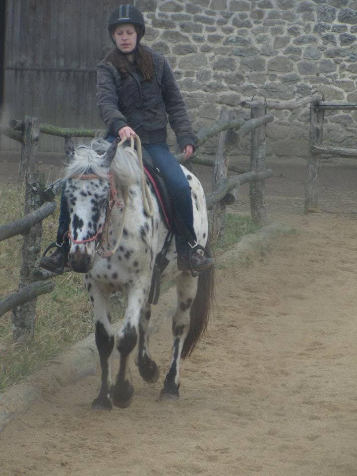 | Dire merci | ah ca faut pas juger ma position : entre dos vouté, talon remonté ou pied en angle droit je pense que je serais toujours une cavalière exécrable c'est bien pour ca qu'il est pratique mon cheval, il ne relève pas ce genre de chose Non mais à part ça moi je suis satisfaite du cours, Union a bien travaillé, on a appris des choses et on a des pistes de travail. Je ne serais jamais une cavalière, ca c'était quand j'étais jeune! Mais tout ce que je veux c'est ne pas casser Union! |