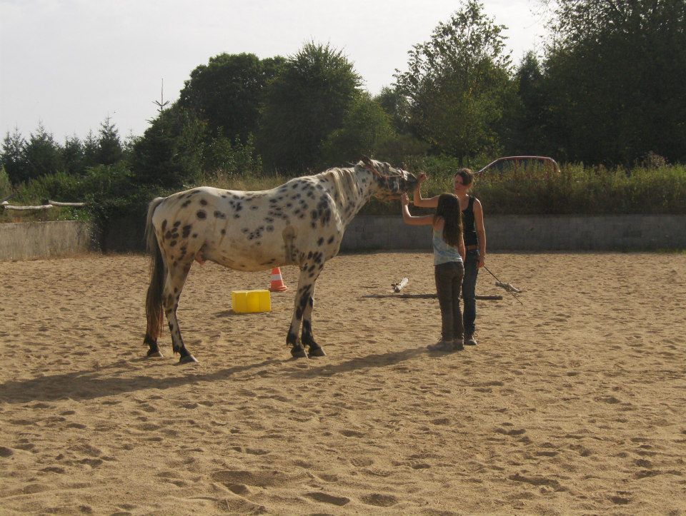 | Dire merci | Je me lance dans un petit post pour présenter un peu l'évolution de mon gros poulain tachu Union Jack, né le 8 mars 2008. Commençons par le début : j'avais décidé d'acheter un cheval, du moins je commençais à me renseigner. Je cherchais plutôt un hongre d'age moyen, type cheval américain tachu. Mais alors je vois ca : ![]() Et a a été le coup de foudre! Déjà au niveau de la robe mais surtout de l'allure générale, je l'ai trouvé adorable. En plus il etai en Dordogne, près de chez moi... Coïncidence, le lendemain je vois dans un magasine une annonce pour une pension qui ouvre à coté de chez moi dans un élevage de PH et QH. Je vais visiter et ça a été le 2eme coup de foudre, pour le cadre et aussi pour les éleveurs et leurs chevaux! Je me dis que c'est un signe, je vais donc rendre visite au petit tachu en Dordogne, en avril de 2008 il avait un mois: ![]() ![]() ![]() Je rencontre un petit poulain déjà très sociable voir coquin, aventurier et surtout adorable. Je rencontre aussi ses 2 parents qui ont un super mental: papa: ![]() maman ![]() Je craque complètement, le contrat est signé directement: je le récupérerais en septembre! Je l'appelle Union Jack. Suite... |