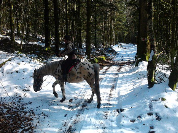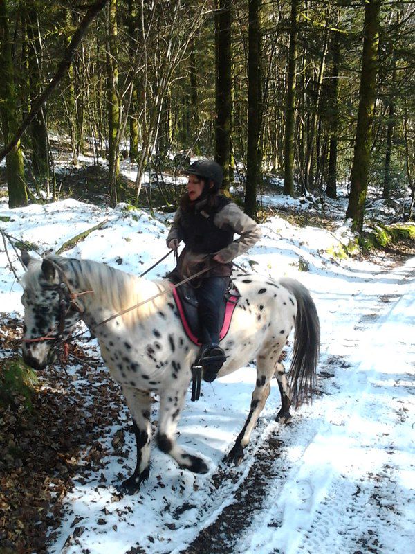 | Dire merci | Super la balade dans la neige (bon sauf le petit coup de flippe ) et le cours!Tu étais en bride carrément au juste 1 seul mors qui était un mors de bride? Intéressant en tout cas! Vous avancez bien tous les 2, c'est cool! |