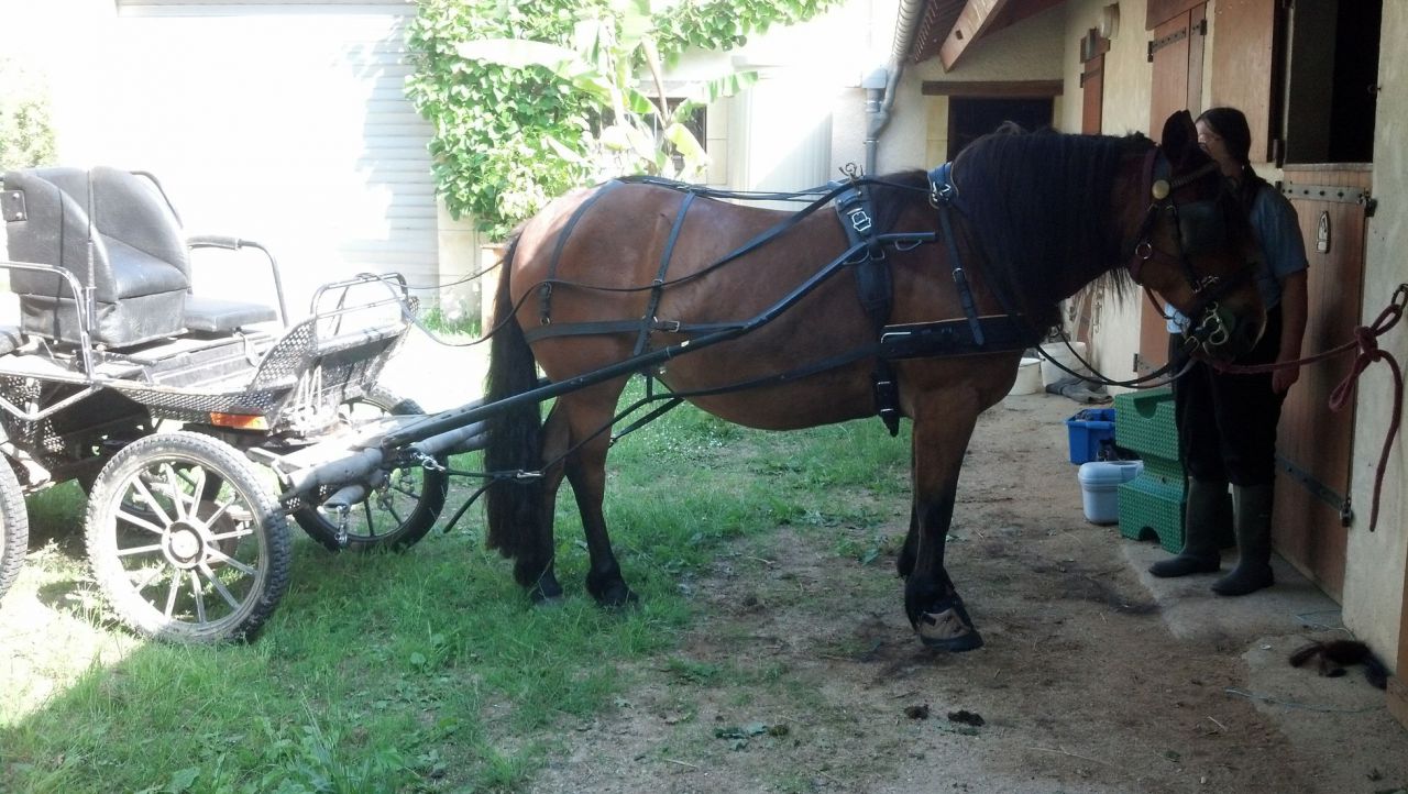 | Dire merci | Donc de retour de 2 mois de pension travail montée, impeccable, maintenant elle est plus calme et à l'écoute attelée. |