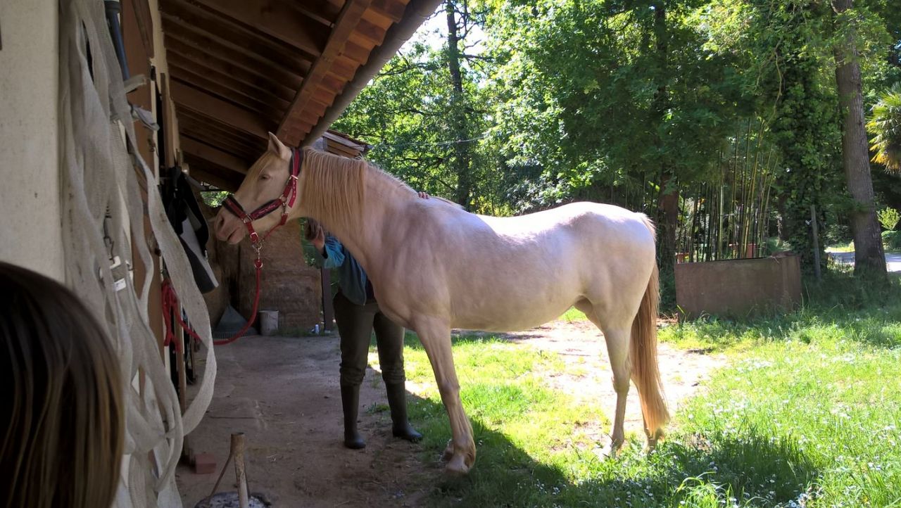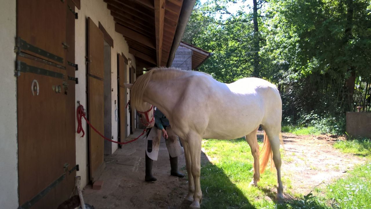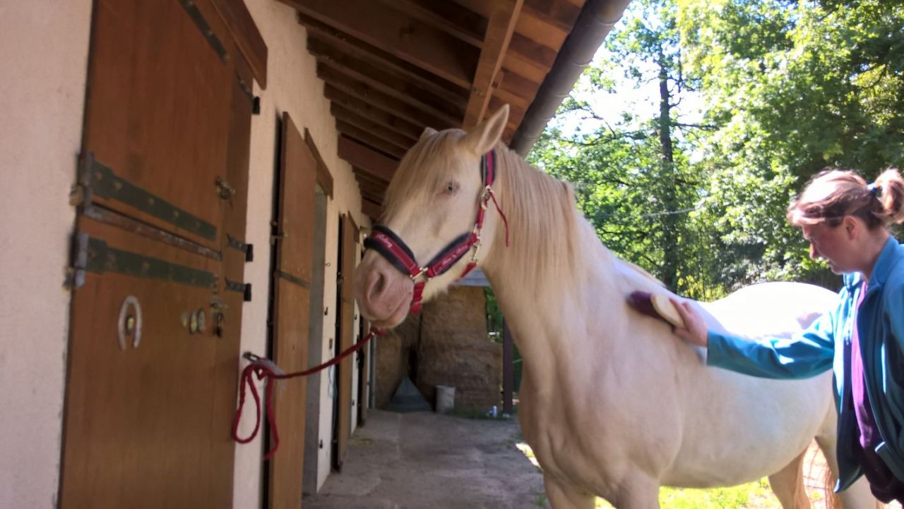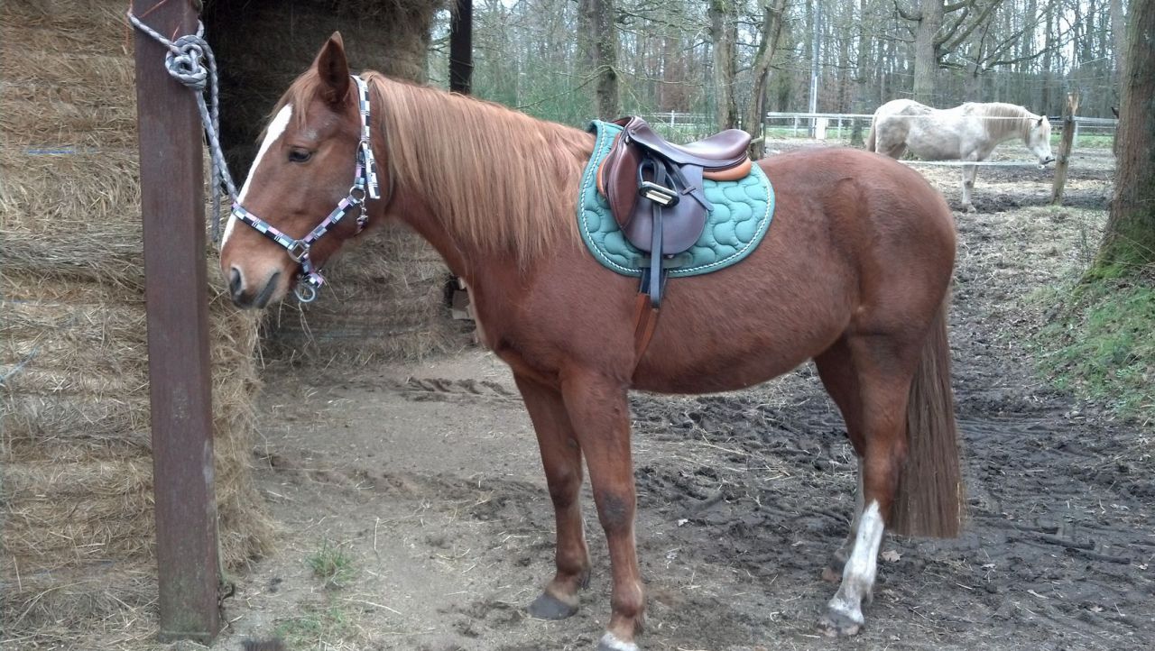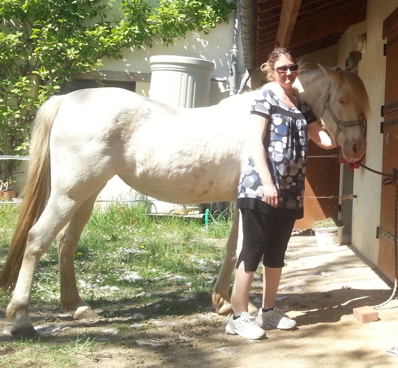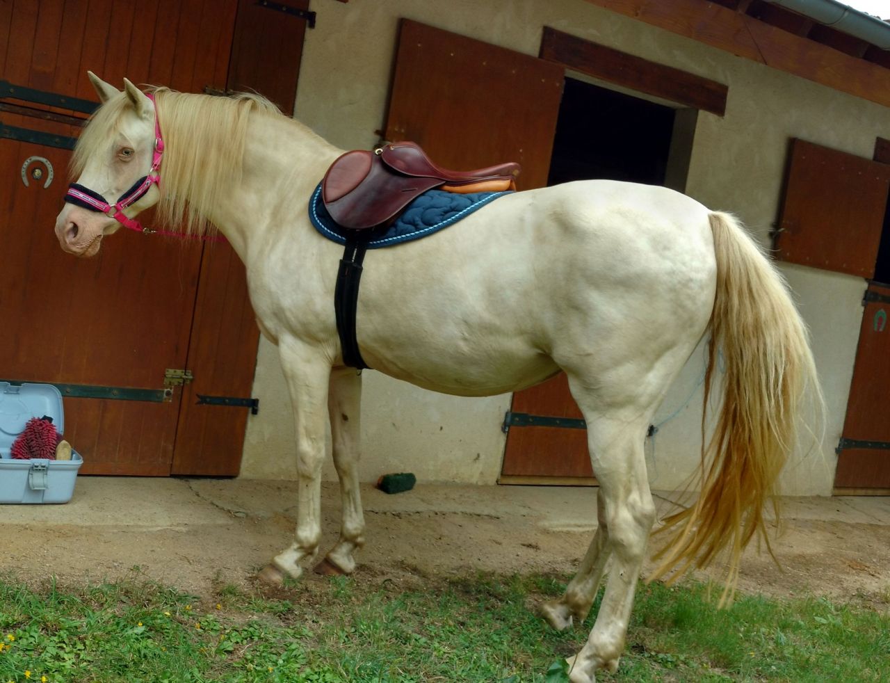 | Dire merci | Un amour Méribelle. Souvent les oreilles couchées. Et je me fait modre à chaque pansage et sanglage. Et muselière obligatoire pour le maréchal sinon il n'y touche pas. Donc jument sympa quand elle le décide ! |