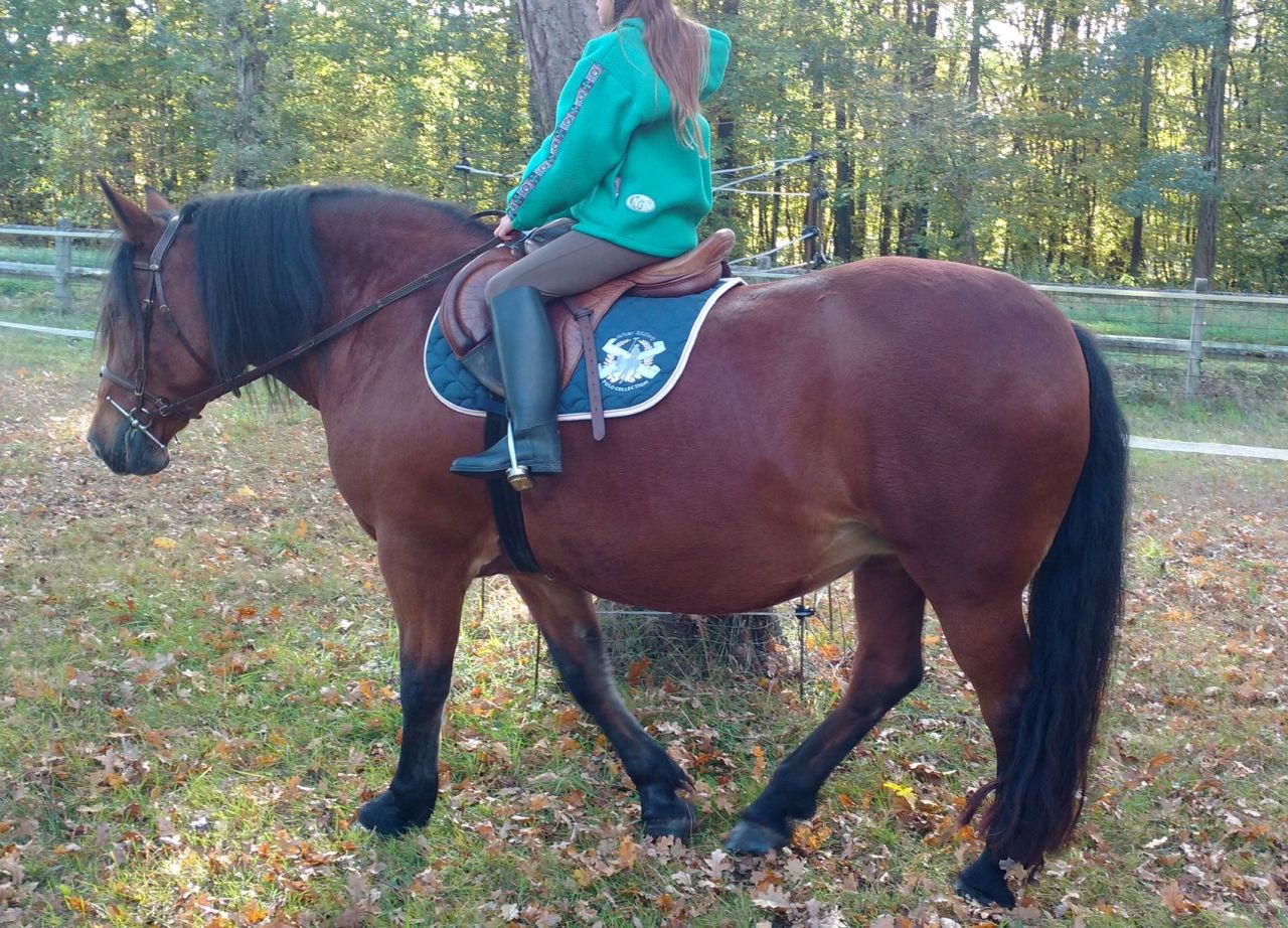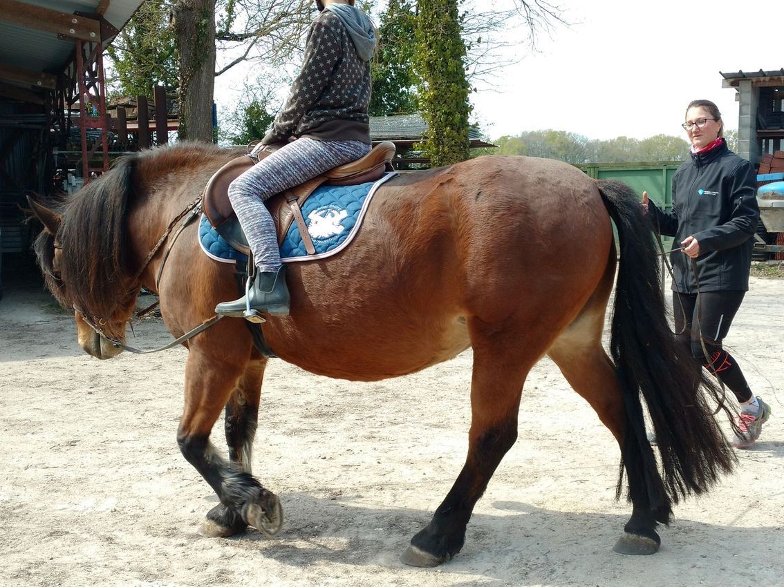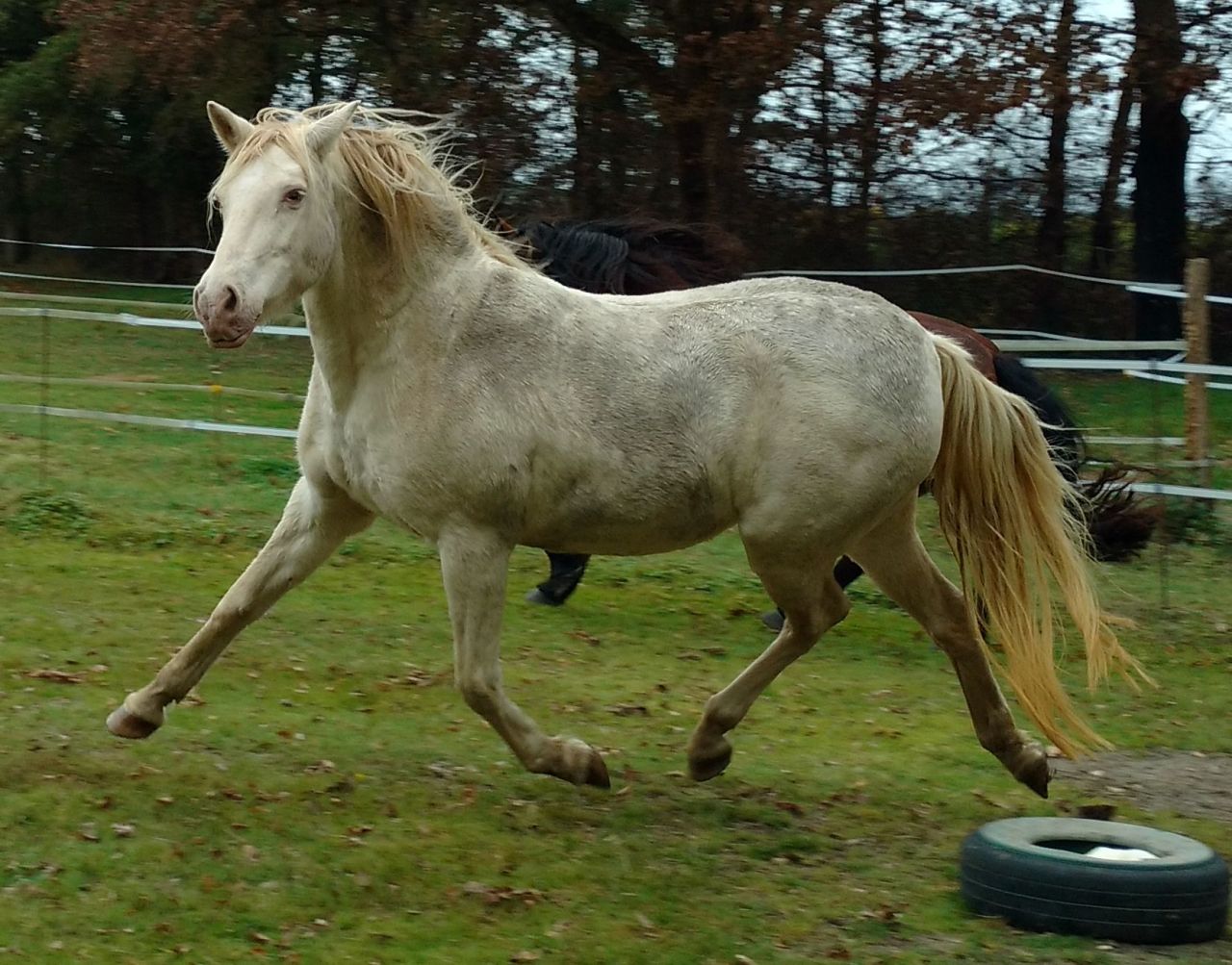 | Dire merci | balade en main elle aime si on ne s'éloigne pas trop des copines, en longe déconseillé par l'ostéo car trop d'appuis sur ses articulations déjà douloureuses, au longues rênes elle fait des demi-tour brusques et s'enroule dans les rênes... . sinon sa spécialité en longue c'est de menacer (dents et ruades) |