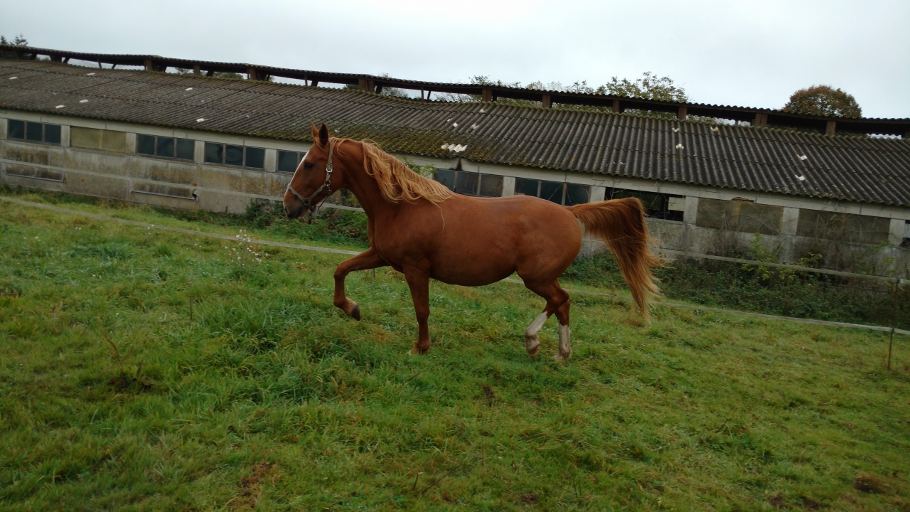 | Dire merci | la grande ne boite plus depuis 1 mois, mais pas envie de retenter le travail vu son état de cet été de boiteuse permanente, elle ne souffre pas c'est l'essentiel ! La véto dit qu'avec le temps... Quand je vois à la vitesse qu'elle arrive (grand galop pilé devant moi) pour nous accueillir + 15 tours de pâture au grand trot ou galop. ![]() et Elle galope bien pour une trotteuse pure race ! |