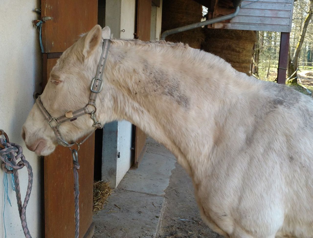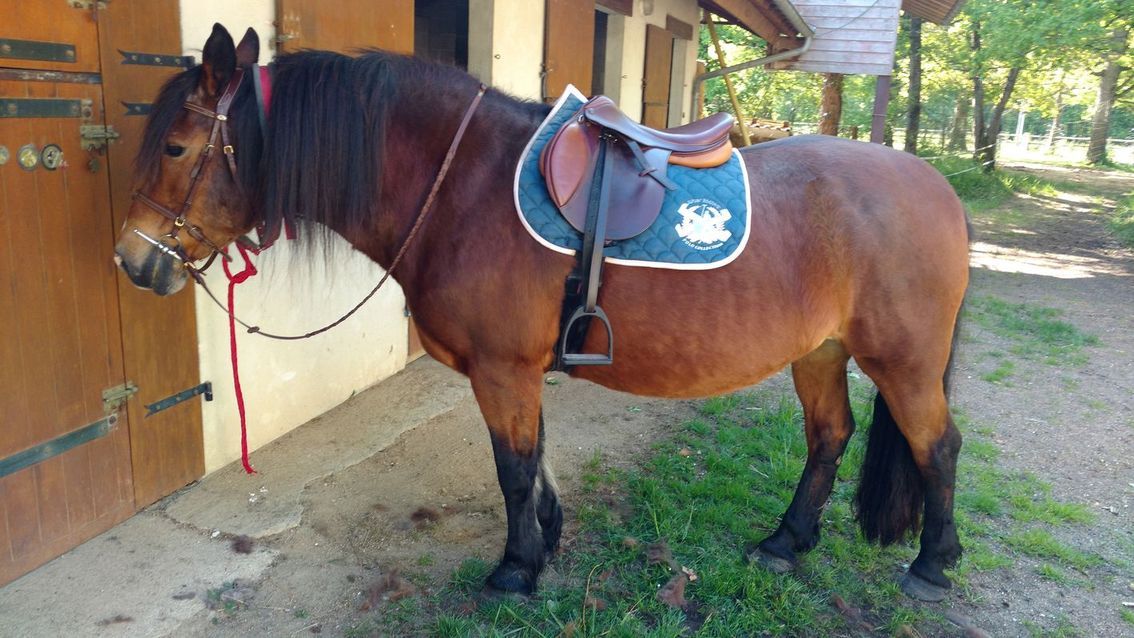 | Dire merci | Méribelle ne fait plus rien depuis des années, elle a eu des soucis de santé il y a quelques années et ne supporte plus d'être montée ou attelée, réactions assez violentes, et elle mord mais ce n'est pas nouveau est suivie par ostéo, elle a de l’arthrose à l'épaule droite. |