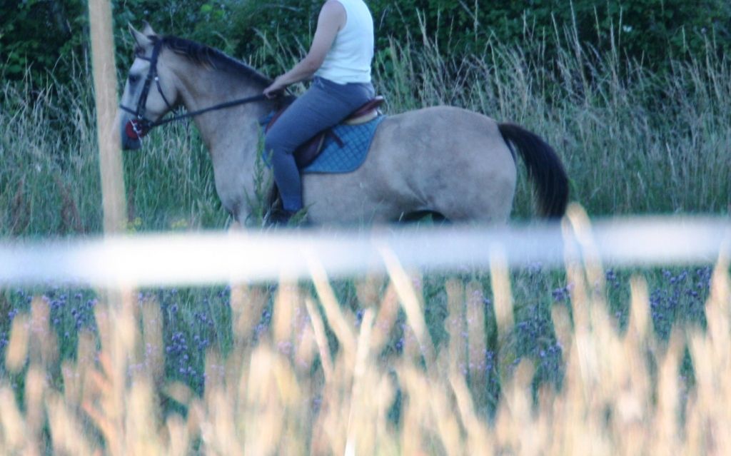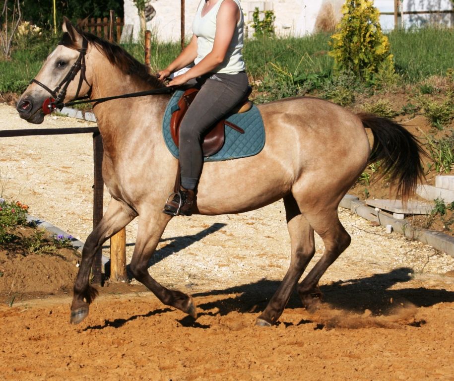 | elle est petite et elle a été débourrée à 3 ans puis remises au prè. depuis 6 mois environ j'ai commencé à la monté mais je me fais aider par une copine pour commencer le dressage de bases. En plus de cela je l'emmène dans un centre équestre pour travailler elle comme moi nos bases. j'ai eu un accident à cheval qui m'a pas mal refroidie, donc je commence à reprendre confiance en moi je je recommence juste les sortie en extérieur à cheval. j'ai encore un peu peur mais Rita est exemplaire pour un jeune cheval. Donc sur les photos c'est ma copine qui la travaille car elle voulait bosser un truc bien spécifique les dépards au galop. Donc on la travaille à 2. |