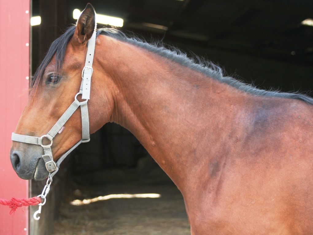 | ben je t'en avais parlé, cheval hyper sensible qui se laisse tripoter que par moi, licol mis et enlever au pré alors que le proprio y arrive pas. Cheval avec une grande sensibilité, bref un cheval de femme. |