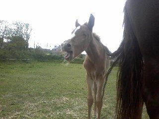 | mdr java, j'parle de l'espece de girafe dans le champ qui suit ma jument partout tsé t'as le meme gabarit chez toi avec Java, tu vois de quoi je parle hein bon en tout cas pour ce soir, la petite a pris 120ml de lait de Kracotte, le lait arrive tranquillement et demain, on va s'y attelé coriacement (ortho?) je vais lui faire la recette de mon veto, pas l'ideal mais si ca peut calmer sa faim pour limiter l'acharnement sur la mere un jaune d'oeuf pour un litre de lait et le plus régulierement possible, je metterai un peu de sucre pour suivre le gout du lait de Kracotte (qui est passé en 10h de fade a legerement sucrée et bien sur ce qui sera trait sera donné a la pouliche car ma mono, ex eleveur, me dit que c'est le colostrum toujours... mais comme ca commence a devenir vraiment collant, c'est que le lait arrive doucement mais surement ![]() de la patience, moi je dis de la patience ![]() et pour moi ce sera régime : café clope testage du lait ah et le lait en poudre de jument, c'est pour demain début d'apres midi!! y'a interet que la petite le prenne bien et ne gaspille pas vu le prix au kilo !! mais quand on aime on ne compte pas ![]() allez a demain pour de nouvelles aventures je tente les photo portable pour y ajouter quelques illustrations a tout ca et une ch"tite vidéo pour vous montrer le bolide que supporte Kracotte quand elle commence a galopé dans tout les sens tout ceci pour détendre l'atmosphere du post ![]() |