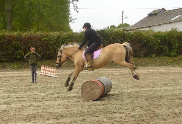 | Dire merci | Possible, surtout si c'est après ce saut que j'ai afilli me gaufrer! Enfin non, c'est pas celui là. Quand j'ai failli tomber, c'était quand on lâchait les deux mains. Vous l'aurez compris, aujourd'hui, on a fait de la mise en selle obstacle! |