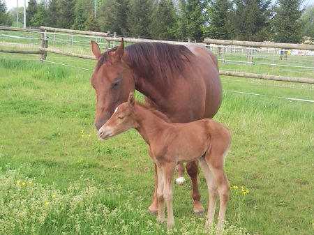 | Dire merci | superbe petite pouliche et la maman est tres jolie et a vite retrouvé la ligne! |