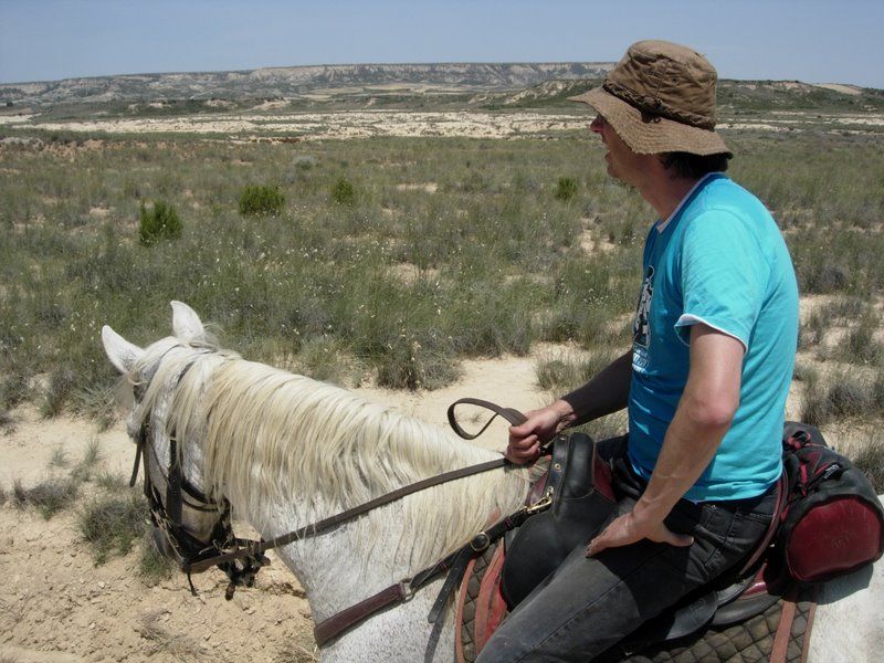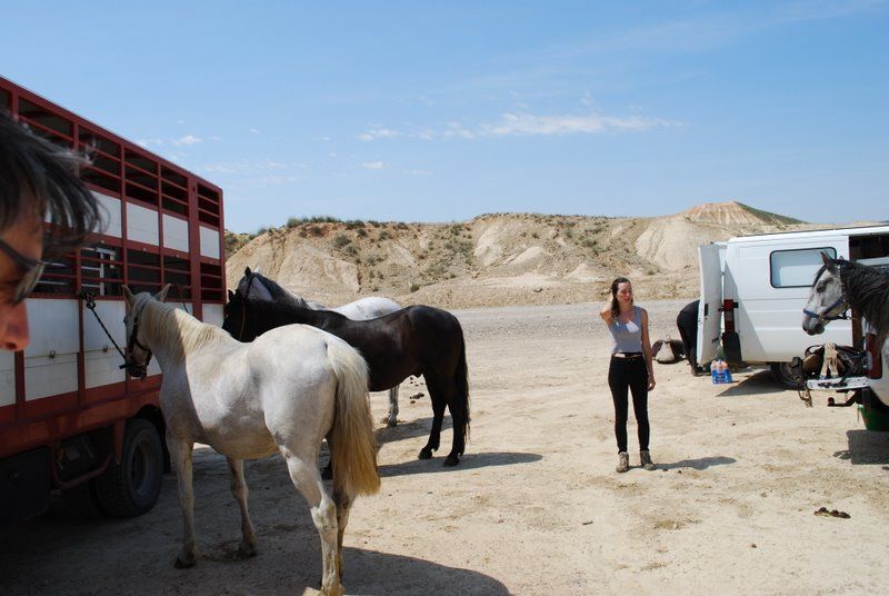 DéconnectéDire merci | Alors moi, j'étais surtout venu présenter ZE Inal à ma jeune jument Balea. Comme ils avaient bien batifolé et que le week-end était libre, me suis dit que c'était vraiment dommage de ne pas encore pouvoir monter Balea.... Mais: oh !!!!!!! en regardant au fond du van, il y avait Azan qui se cachait et qui s'était mis du voyage (14 heures de van depuis la Suisse, vraiment trop sympa........) Du coup, on laisse Balea avec Alija, on ramasse Inal et Azan et direction Bardenas... ![]() C'est parti: l'organisateur (encore mille merci !) réceptionne le convoi. ![]() |