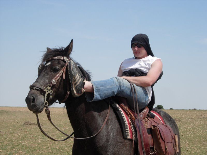 DéconnectéDire merci | C'est Azan qui doit lire le plan pour rentrer: merde c'est en espagnol, il ne sait que le russe..... Mascha, courage, tout va bien se passer, on te ramène à la maison ! ![]() A lone rider on her way back home...... - Do you mind if I ask you where to get some water for my horse ??? ![]() |