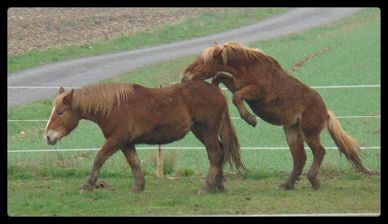 | Dire merci | bon j'ai téléphoné a l'étalonnier la miss refuse toujours l'etalon malgré la piqure il y a 11 jours donc la question m'est venue elle a été saillie fin janvier par un autre étalon breton serait elle pleine de 4 mois finalement ? la veto vient la voir vendredi matin elle a été certifiée vide pourtant par les HN ![]() |