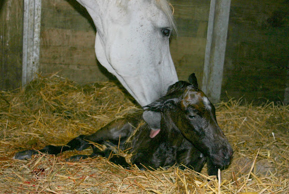 | Dire merci | alors je me suis encore gourée dans mes prévisions de sexe de poulain mais c'est vraiment pas grave ! ![]() comme d'habitude, Hill Rose m'a fait un poulinou portrait craché de son papa (sauf la couleur, qui est juste maintenant mais ça va changer) voici Papa : ![]() né à une heurer du matin. contente, ça fait huit jours qu'elle regarde la pouliche de sa copine avec envie... mmmm toi je t'aime tellement, je te mangerais... et hop, debout ! et pendant ce temps, dans le box à coté : et ce matin tout sec : |
