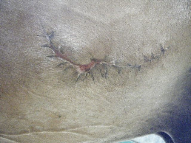 | Dire merci | La couture à lachée on ne peut plus recoudre.Loulou a un gros trou dans le ventre avec des mouches tout autour ... Par contre niveau moral il va beaucoup ! Je vous metrez les photo ce soir quand on lui aura doucher la plaie et qu'on lui aura mis du Dakin. |
