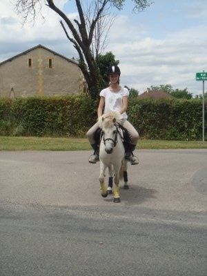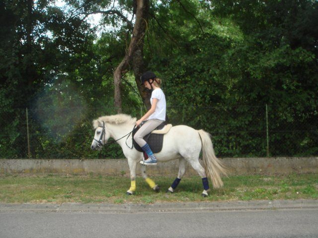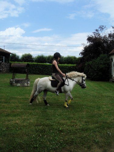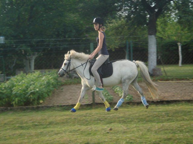 | Dire merci | On fait un peu de tout pour l"instant monté on revoit les bases donc des transitions et des p'tites figures de manèges et on travail aussi un peu a pied, on fait des jeux on lui apprend quelques tours & bien sur on fait aussi des balades! voila ![]() |