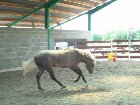 | Dire merci | merci epna !! g un peu exagéré dans mon message du jour !! il est gentil mais bon il a 1an, est entier et ne connait pas l'homme alors il n'est pas (encore) respectueux de l'homme mais comprend vite qui commande je l'ai attaché à la barre pour la 1ère fois de sa vie et malgré quelques coups de tête et des tentatives pour s'en aller en tirant, il n'a jamais tiré au renard et est resté calme tout le temps où je l'ai brossé bon les pieds c'était plus dur mais j'ai réussi à prendre les deux antérieurs et même à tapoter sur la sole du pied levé j'essairai de prendre des photos demain je le lâche dans le manège en liberté ![]() |
