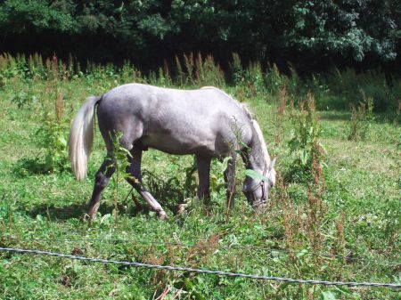 | Dire merci | bonsoir bonsoir journée importante aujourd'hui pour Urga qui a pu aller au pré en liberté après un petit coup de brosse partout (même les pieds ! eh oui ça vient) et une petite balade en licol le long du chemin du club, direction le pré et connaissance avec le fil électrique !!! aie ... ce qui devait arriver est bien arrivé et Urga a voulu passer à travers le fil mais avec le courant, ça mord !!! bon il a vite compris : au bout de deux fois il a abandonné et a laissé le fil gagné (il a même hésité en rentrant ce soir à passer là où était le fil alors que j'avais ouvert la porte !) finalement tout est rentré dans l'ordre (les émotions remises !) et Urga dort encore au box pour s'assurer qu'il reste bien au club et voici 2 petites photos du pré : ![]() ![]() |