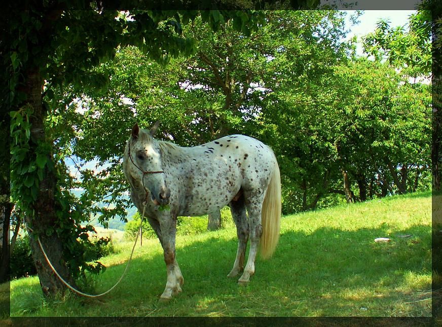 | Dire merci | c'est quoi le nom de sa robe ? dsl j'y connas strictement rien en appaloosa alors je me renseigne !lol !il a l'air d'être un super gentil cheval Tu l'as depuis qu'il a quel âge ? |