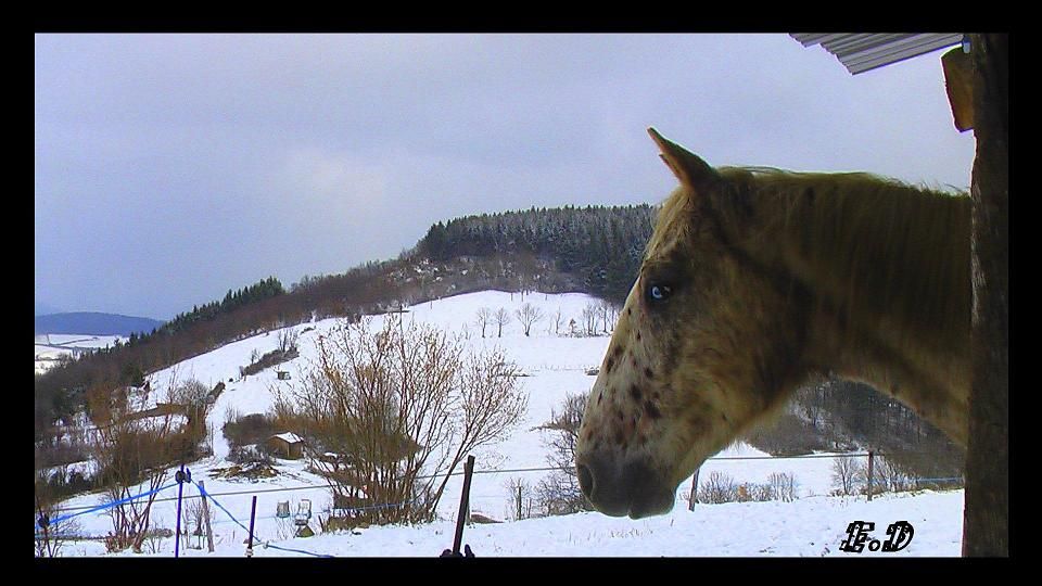 | Dire merci | Hiihii merci !! Eh bien pour la robe, c'est un peu spécial, il est né alezan capé, c'est ce qui figure toujours sur ses papiers, mais aujourd'hui ... je pencherais plutôt vers un near léopard, je n'en suis pas sûre, besoin de grands connaisseurs !!! Bref, c'est mon tachu d'amour, cela un peu plus d'un an que je l'ai, il vient d'avoir 4 ans le mois dernier, mais je le connais depuis qu'il a un an et demi ! Quelques photos en plus alors, puisque vous réclamez ![]() On se prépare à travailler en liberté dans le rond de longe, la casquette est de mise !! ![]() Une petite sépia, à l'arrêt : ![]() Mon beau gosse ... ![]() Un petit portrait ![]() ![]() ![]() |