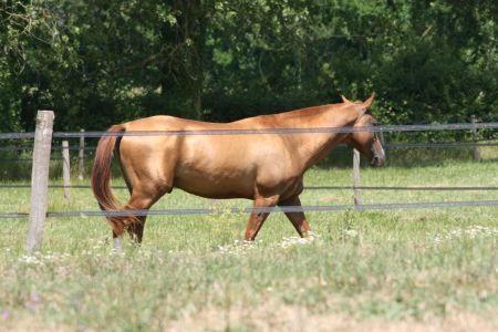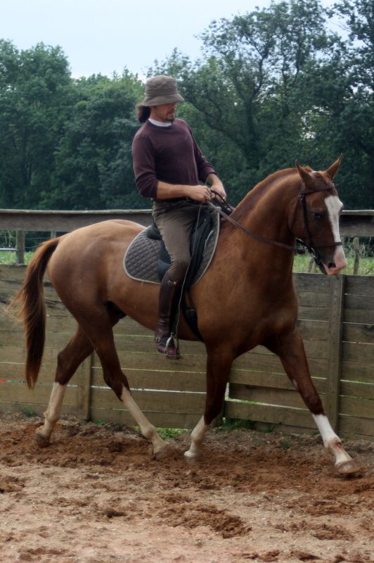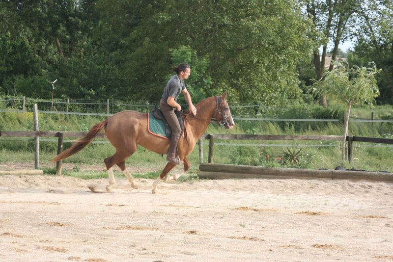 Bonjour à tous, merci pour tous vos commentaires; cet enrênement...oui j'ai mis ces photos car c'étaient les plus claires (il a plut presque tout le temps qu'il a été la bas); il y avait une jument en chaleur juste derrière la clôture et Riazaqn ne pensait qu'à se débarrasser de son cavalier pour aller servir la demoiselle; les enrênements il les a eu qu'une seule fois; oui il a été débourré 1 an plus tôt avec juste 3 fois monté en fin de "pré débourrage", le but étant de le mettre aux ordres et de le laisser un an tranquille en attendant ces 4 ans...nous avons entretenu le travail en continuant à le longer et en lui mettant la selle de temps à autres; son vértitable débourrage/dressage s'es passé il y a donc 2 mois maintenant à 4 ans passés; Riazan est très doué, les tékés apprennent très vite, même le dresseur n'en revenait pas; en ce qui concerne sa morpho, il est loin d'être maigre (c'est un soucis car sans travail il grossit en voyant un brin d'herbe ), il es le résultat du croisement des 2 lignées les plus massives (lignées ancienne dite "guerrière) qui a donné un produit "sport" tout en étant typéd'autres photos: [url=https://www.1cheval.com/membre/services/photos/images/43470.jpg] ![]() [/url] [url=https://www.1cheval.com/membre/services/photos/images/43470.jpg] ![]() [/url] [url=https://www.1cheval.com/membre/services/photos/images/43468.jpg] ![]() [/url] [url=https://www.1cheval.com/membre/services/photos/images/43467.jpg] ![]() [/url] en ce qui concerne le postérieur plus haut que le garrot, bon nombre de tékés sont comme ça, c'est une de leur caractéristiques, tous le n'ont pas mais c'est fréquent, les postérieurs sont comme des "sabres", les reins plus haut contribuent à donner le côté levretté |