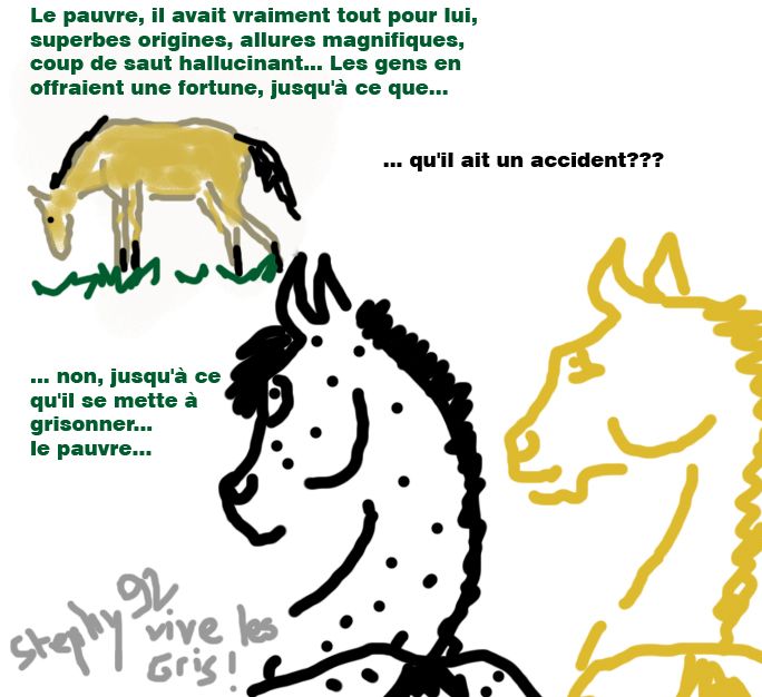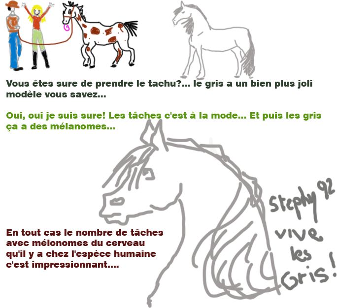 | Dire merci | Euh c'est censé être quoi ton premier dessin marinette ? Moi aussi j'adore les gris, je revais d'un cheval gris et j'en ai acheté un noir mdrrr ! Mais depuis j'ai acheté une ptite jument grise trop jolie et trop gentille. Vive les gris |