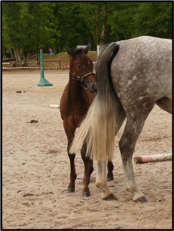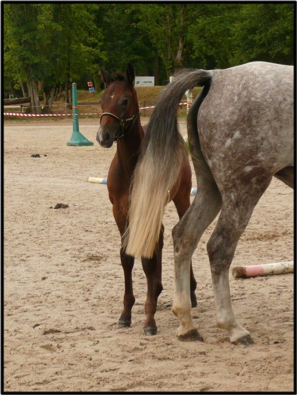 | Dire merci | vendredi dernier Galeor avait inscrit une de ses poulinières suitée au concours élevage du "boulerie jump". Objectif: faire découvrir ce genre de concours à sa stagiaire qui malheureusement n'a pas pu venir ![]() Du coup je me suis incrustée ![]() et, à la grande joie de Galeor, c'est moi qui ait fait les pions Nous avons donc emmené Nirvana du Very (par rebel Z) et son poulinou, Very Nippy du Lié (par Koro D'or) Pis, alex_isis nous a copiées et a emmené Isis et Versus. ![]() |
