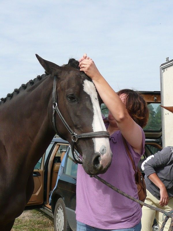 | Dire merci | Vendredi dernier j'ai profité de mes vacances ( ) pour accompagner Galeor et M.Galeor aller voir un de leur 4 ans en cycle classique de complet.Il a fait beau, chaud, y'avait plein de beaux chevaux, de grands cavaliers du complet, j'ai appris plein de choses et en plus...Ravel a décroché sa qualification pour la finale à Pompadour ![]() Voici le Loulou: ![]() |