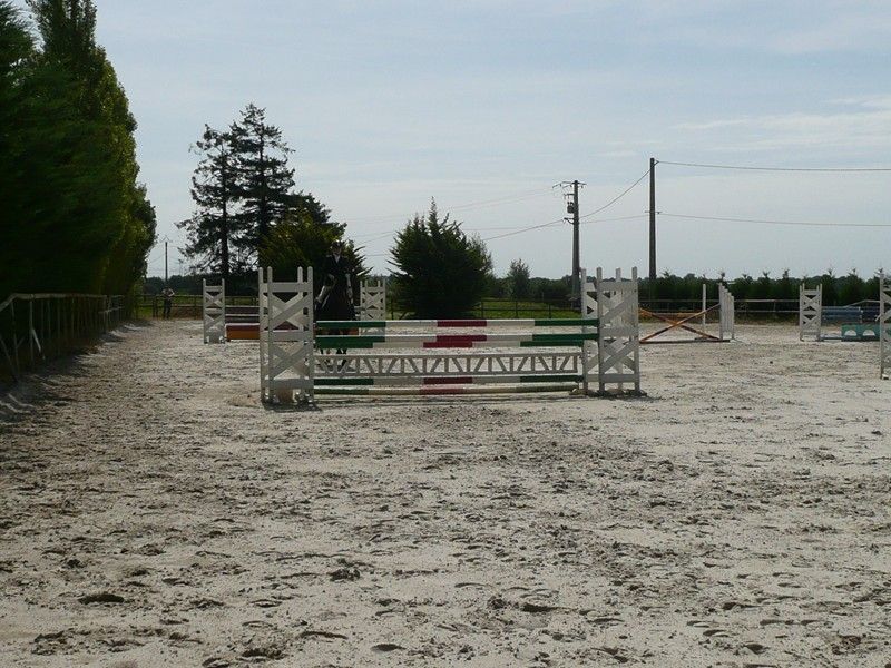 | Dire merci | Une petite dernière sur l'oxer...![]() ...et ensuite on passe sur la grande carrière! Je posterai la suite plus tard ou demain...je vous mets une photo du tour pour vous faire patienter ![]() comme il s'agit des 4ans le tracé est tout simple: les deux 1ers obstacles sont sur la longueur, les deux suivant sur la diagonale et les deux derniers sur la longueur suivant. La seul difficulté, c'est le pastel à l'entrée de la diagonale: avant le passage de Ravel, quasiment tous les chevaux y ont fait une barre ![]() |