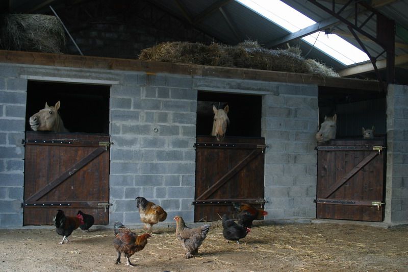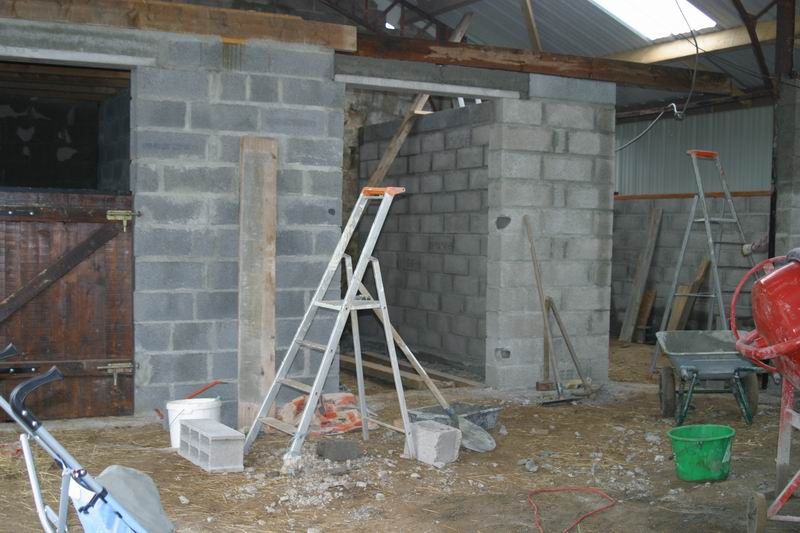 | Dire merci | Ce mois ci on a aussi construit 2 nouveaux box, donc maintenant 3 en tout: 1 pour Volcane, 1 pour Morenn, et les 2 petits mec dans le 3è qui est plus grand (box poulinière).![]() J'ai parlé trop vite j'ai une photo de Thor dans la nouvelle aire de pansage...Heu...Y'a du boulot! ![]() |