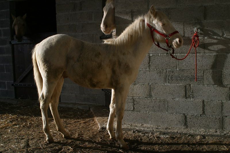 | Dire merci | Volcane est pleine, elle vient d'avoir la deuxième écho et le petit a environ 50 jours, on voit sa tête! L'étalon c'est FUN, donc un plein frère/soeur de Thor à naitre pour Mars 2011, un PP crème... |