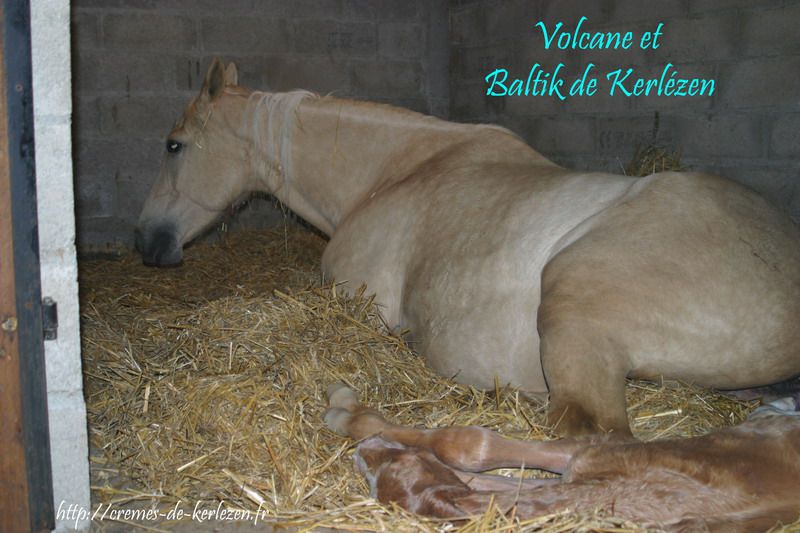 | Dire merci | Ce ventre elle nous le fait à chaque fois, et il faut voir ce qu'il reste 2 jours après le poulinage, de quoi être verte en tant que femme! C'est peut être encore un mâle, il parait que les gestations sont plus longues, encore un mâle crème?? Vu qu'elle en a déjà fait 2 (sur 2 poulains). Jamais 2 sans 3 ??? |