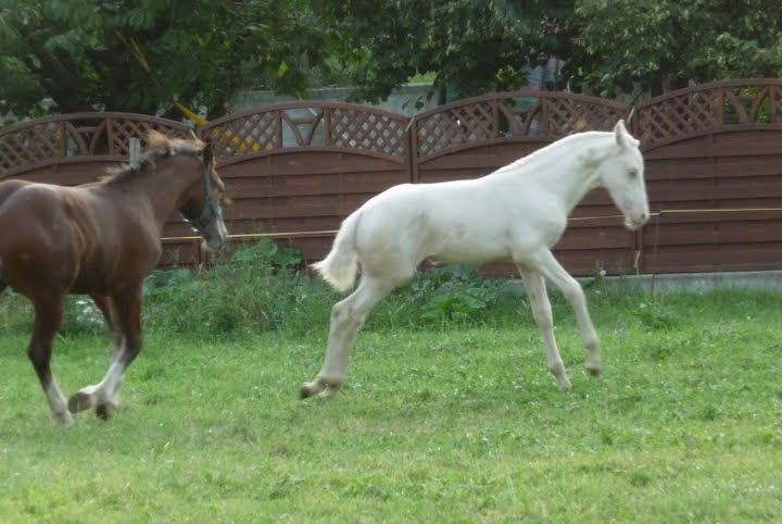 | Dire merci | NOn il va pas grisonner!! Il va peut-être un peu foncé..devenir plus ivoire..! Et les yeux vont être soit bleus, soit verts, soit marrons!! Voila les photos des parents:¨ Pacane, la maman: [url=https://www.1cheval.com/membre/services/photos/images/45936.jpg] ![]() [/url] Et le papa: [url=https://www.1cheval.com/membre/services/photos/images/45980.jpg] ![]() [/url] |