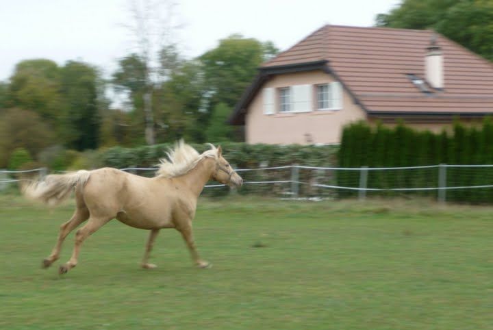 | Dire merci | Oui elle était en vente.. on l'a eue en janvier cette année ! C'était pas prévu, mais on avait voulu faire porter notre ponette avec l'étalon et ça n'avait pas marché. Mais finalement on a quand même eu un petit poulain de cet étalon ! ! ! Oui syrius, j'ai vu des photos de ta jument et c'est vrai qu'elles se ressemblent ! ! |