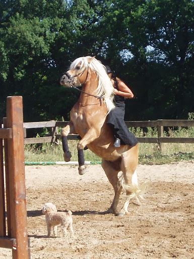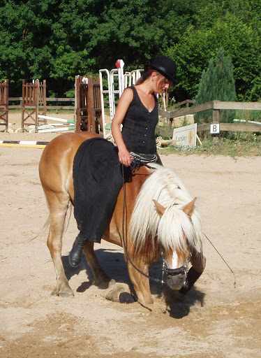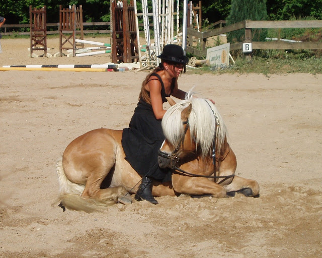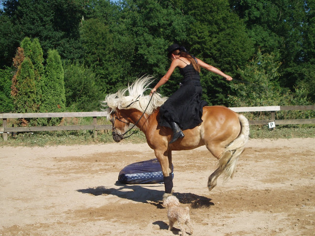 | Dire merci | Me voilà en spectacle à Equid'Espace (salon du cheval en Haute Savoie) lors d'un pas de 2 en amazone avec mon ancien costume (je suis celle avec la chemise rouge)![]() ![]() Et cette année on a changé de costume, mais je n'ai pas de photos en spectacle. Mais j'ai fait une petite démo sur ma jument la semaine dernière avec: ![]() ![]() |