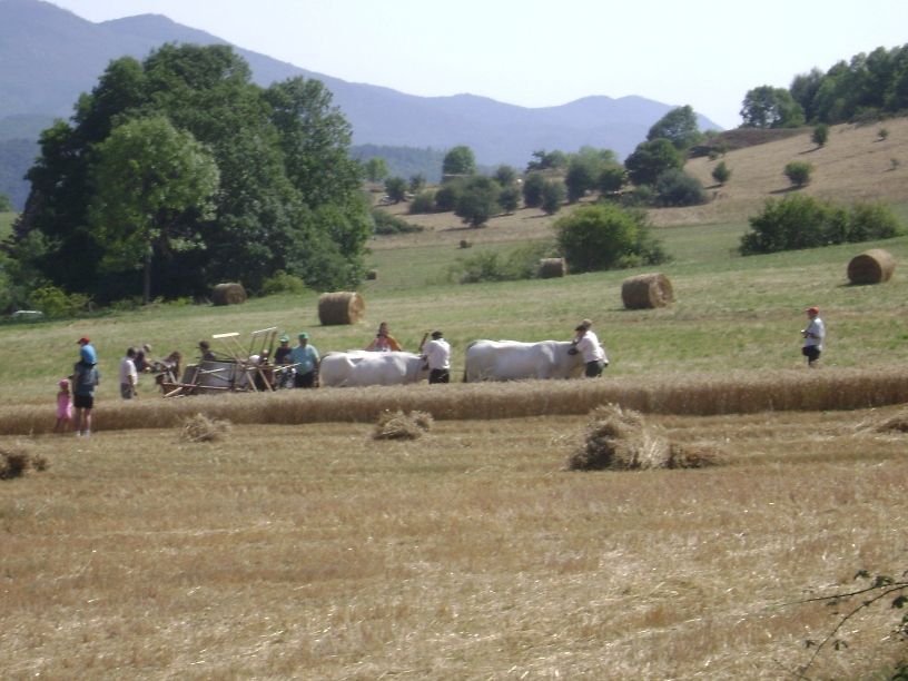 | Dire merci | Donc on débouche sur ce plateau de 12 kms de long entouré de montagnettes forestières, répondant ainsi à l'invitation d'une membre du club d'attelage de ma mère, les 4 A (Narbonne) qui habite dans cette contrée perdue et élève le petit cheval de Castillon...C'était la fête de la moisson à l'ancienne organisée par le village d'Espezel. C'est un plateau où on pratique surtout l'élevage de bovins, la culture de la pomme de terre bio - et d'ailleurs tout ce qui est bio !...) et où il y a des round ball partout et d'ailleurs tellement de round-ball qu'il y en a plein qui se perdent dans les champs...![]() |
