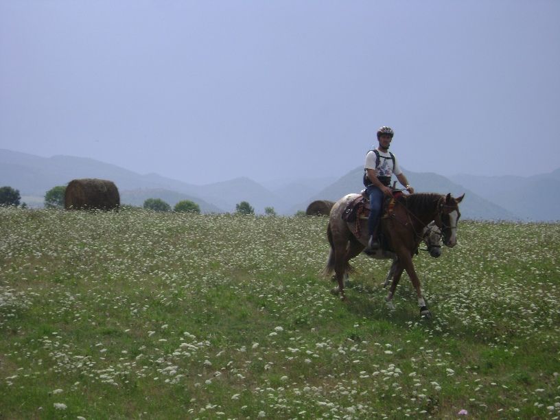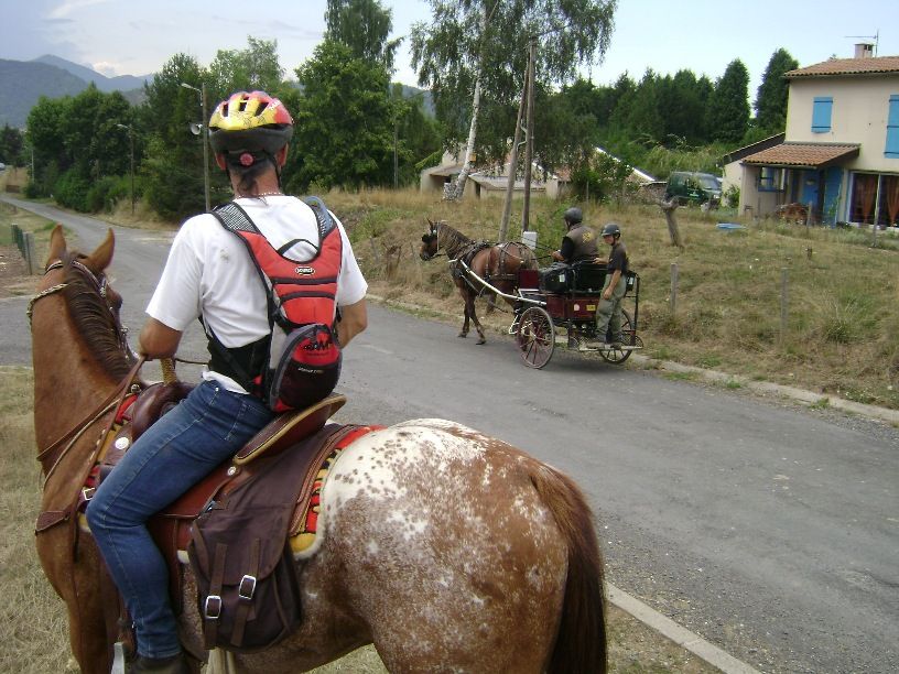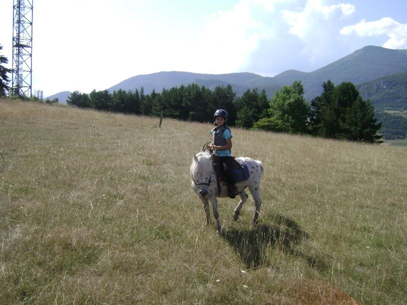 | Dire merci | Sur la photo, c'est moi sur ma fidèle "Hoopa". Je me suis mise en premier car après...on ne me verra plus !!! Pour la bonne et simple raison que je suis la preneuse de photos et que quand d'aventure quelqu'un a l'idée de me prendre, je suis coupée en deux, ou pas sur la photo etc....(Ca bouge un cheval !) Donc, direction Carcassonne, puis Limoux, Puyvert et son château Cathare puis montée vers le plateau de Sault (c'est dans l'Aude !). |