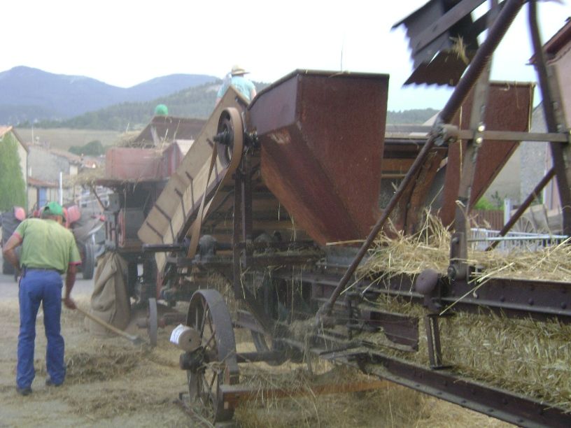 | Dire merci | On voit bien les sacs de grain qui se remplissent au fur et à mesure que la machine est alimentée en épis (que d'ailleurs beaucoup de gens arboraient en gerbes ce qui attirait ma jument comme un aimant...la gloutonne !)![]() |