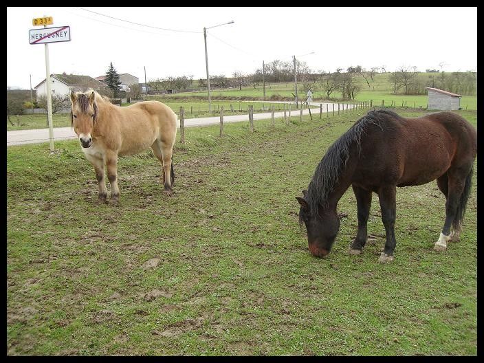 | Dire merci | le mien est un spécialiste du hennissement déchirant on lui a fait le coup la semaine dernière de sortir le petit nouveau tout seul; il a hennit 2/3 fois, puis s'est calmé; on est parti presque 2 heures sans souci; ce matin, j'ai promené Nini, son petit pote; au départ, je voulais juste vérifier le parage que je venais de faire sur une surface plus plane que le parc; mais comme Jojo hennissait comme si on l'avait abandonné au fond d'un puits, et bien Nini et moi sommes partis en vadrouille; tu me crois ou non, on l'entendait depuis le village à côté! mais bon, il a fini par se lasser; il avait juste très très soif quand on est rentrés pour la boiterie, c'est contrariant; ton maréchal a émi une hypothèse? |