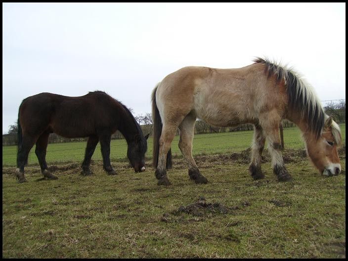 | Dire merci | Mais oui, Indra est bel et bien plus propre! Je les ai brossé tous les deux le jour même mais Champion impossible de le ravoir lol! Il reste poussiéreux. Pis il prend un malin plaisir à s'en foutre de la tête aux pieds et là c'est pas une expression...la crinière j'essaye même pas, c'est pas la super crinière de Fjord d'Indra..il a trois poils sur le cailloux et dur dur de les démêler... J'suis contente que Fuego aille bien! En ce qui concerne les poils Indra commence à les perdre. Et j'ai gagné un trou au sanglage alors qu'elle a du gros poil c'est top!! |