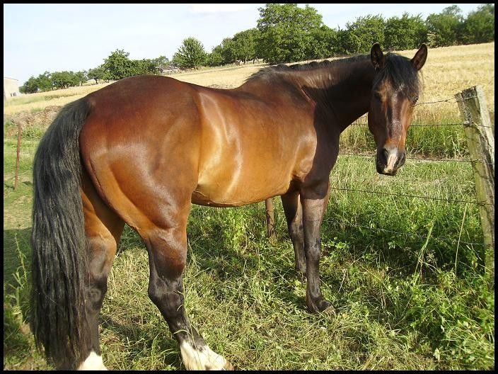 | Dire merci | oui j'en ai de temps en temps, et ils m'envoie aussi des photos d'elle. Elle est montée de temps en temps par une petite de 8 ans et sinon elle est au pré non stop. ![]() Bonne continuation |