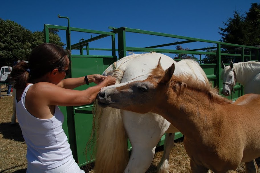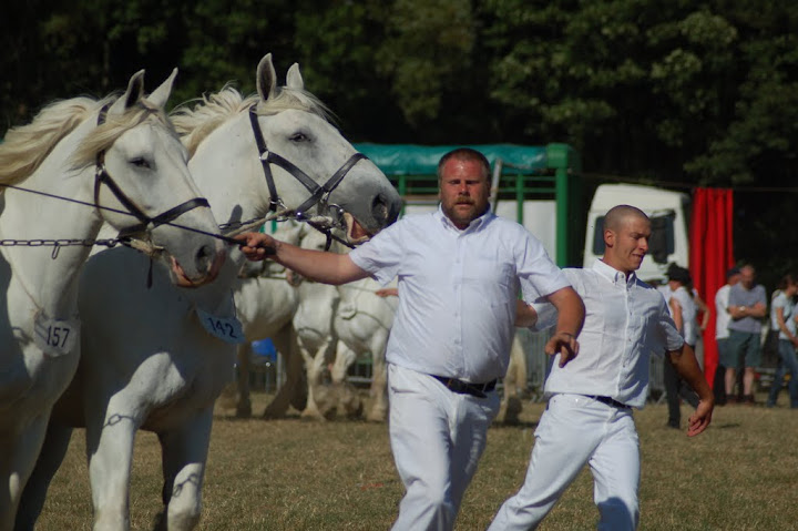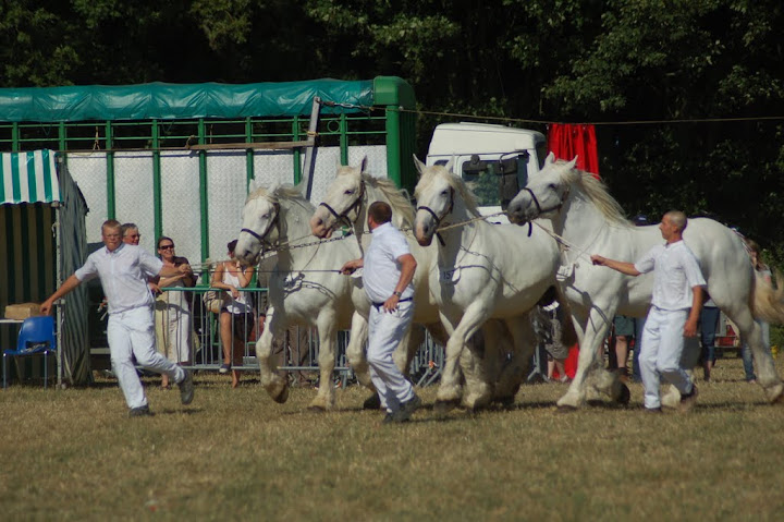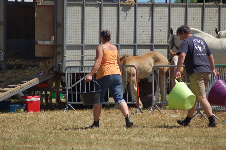 | Dire merci | L'eleveur nous demande a nous les jeunes (on ete 3), pour dormir sur place avec les juments et poulains, donc on a dormi dans la benne du 4x4... super soiré avec les Debruyne, mais tres courte la nuit, a 7h le chef arrive avec d'autres juments et poulains. Et op a la douche pour tout le monde, on natte les queues, on regarde qui passe en 1er... Super journée, on a eu un beau spectacle l'apres midi, puis concours des étalons, puis le meilleurs la presentation des bandes.... ![]() 12 bandes de 4 juments, nous on avait 2 bandes les petites et les grandes tailles, et devinez qui a gagner la plus belle bande de 4 , c Elevage Mequinion avec la bandes des grandes jument ( Jonquille, Olympe, Mirtille et Rose), puis on a fini part les grandes bandes, équipe Debruyne avec 16 juments, et nous avec 9, pour le resultat pas de 1er ou 2eme, car les 16 c magnifique a regardé et les 9 parce qu'elle se tienne bien, et elles sont bien droite... donc execo.Voila le weekend, dur dur |