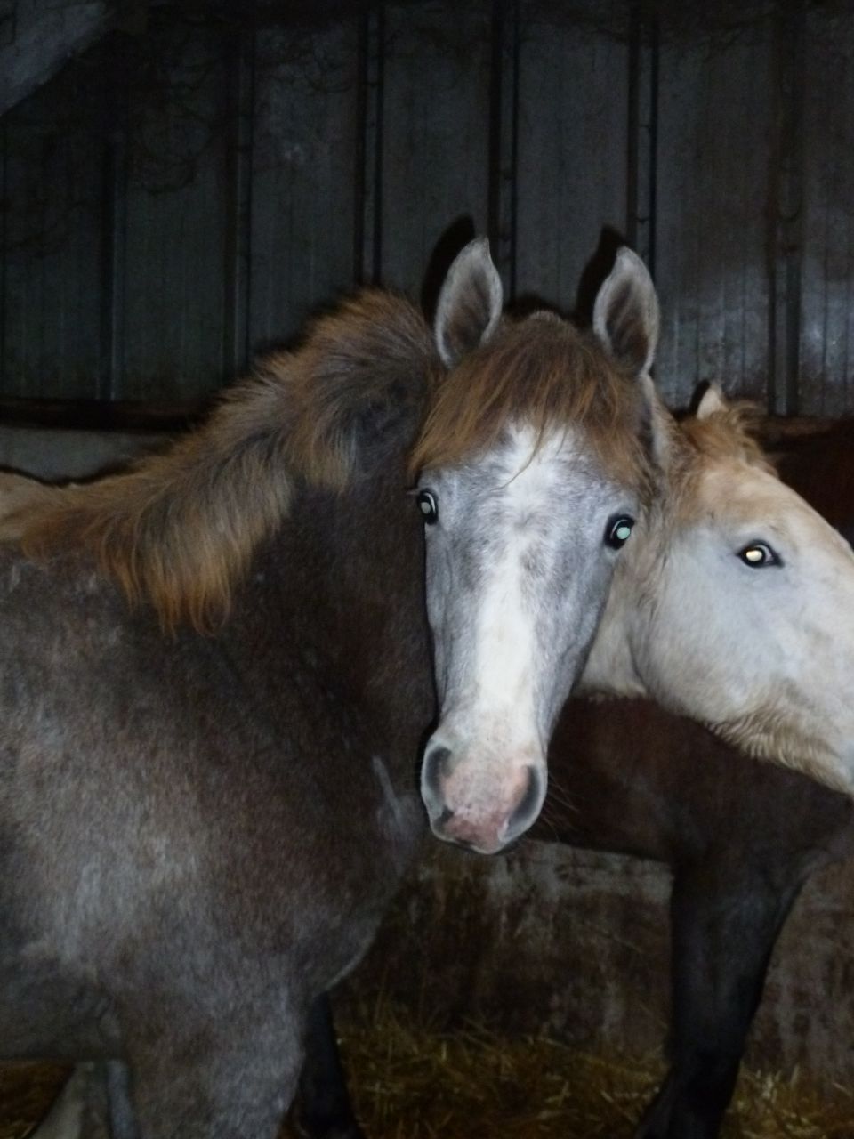 | Dire merci | oui j'ai reçu le mail, iris. Assez bizarrement, ça m'a mis super en colère qu'ils essaient de négocier mon prix pour 66,67€ par pouliche. En même temps, ça m'a fait redescendre sur terre et remis un peu les yeux en face des réalités économiques. Ce matin, j'étais à une foire aux chevaux en Aveyron. Un tas de comtois est parti surement en Italie, le reste des anes, des poneys, des mules, des ibériques, la merens d'un copain. Un percheron 3ans et demi, hongre, débourré attelage, débardage, cordeau, 1700€, il est pas parti. Une jolie ponette de 18 mois, OC croisée comtois x mérens chocolat crin lavé partie à 500E. mon voisin qui m'explique qu'il a lui acheté des PRE plein papiers en espagne pour revendre. il les a payé SUPER chers, 1500E chacun. Bref, je savais qu'ici , les chevaux étaient pas chers mais en fait, c'est pire que je ne le croyais. Fin bref, voilà, je réfléchis et cherche des solutions pas complètement débiles parce que bon... pas la peine de mettre tout le monde dans la mouise.... |