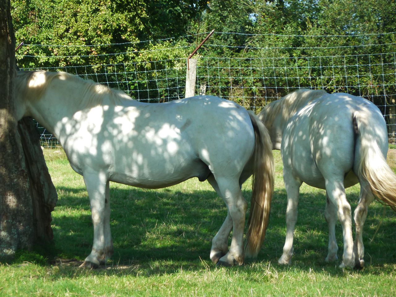 | Dire merci | alors, niveau santé ... j'ai eu les miens à 17 mois, ils ont maintenant respectivement 11 ans et 8 ans. j'ai eu une blessure sur le 8 ans quand il était petit, il a marché sur un bout de ferraille qui traînait dans son paddock ... autrement, ils n'ont pas de problèmes, ils ne sont jamais couverts l'hiver quand ils ne sont pas tondus, ils n'ont aucun soucis de pieds qu'ils soient ferrés ou pieds nus et ils profitent du moindre brin de foin. je chambre assez ma voisine de box, propriétaire d'un SF qui mange en une seule journée ce que les miens mangent en 3 jours à deux ... ![]() évidement .... l'hiver ![]() ![]() ce qui est agréable, c'est que même s'ils sont au pré et pas manipulés depuis longtemps, ils restent curieux de tout et ils rappliquent ventre à terre dès qu'ils ont de la visite ![]() agréable aussi ... ils ont toujours l'oeil pétillant des chevaux heureux de vivre ![]() et puis ... ça a de l'imagination pour se protéger des mouches ![]() |
