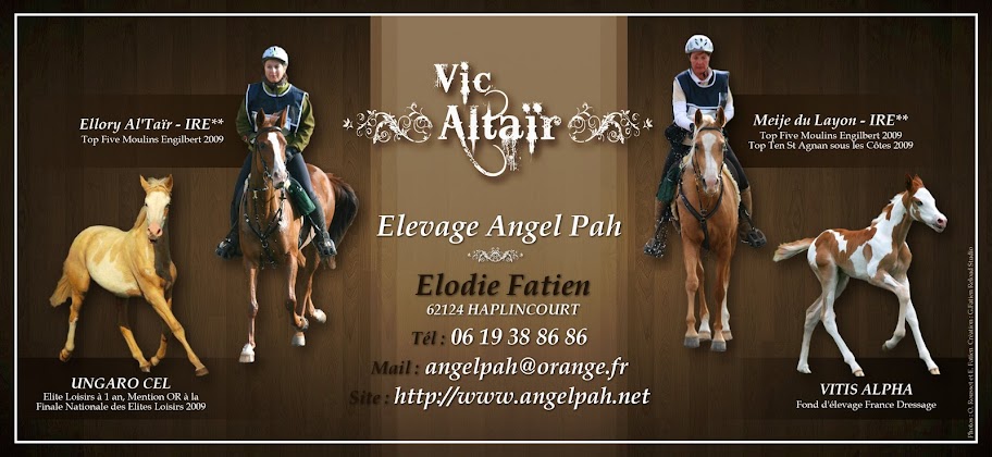 | Dire merci | merci tout le monde ! heureuse que ça vous plaise ! boby >> trop tard pour les changements, la maquette est partie à l'impression ce midi ... oreliii >> non, pas de photos récentes (les dernières que j'ai eu sont d'octobre) .... son proprio n'a pas l'occasion de la voir souvent en ce moment (il est parisien et tous ses chevaux d'élevage sont en pension en normandie) et quand il y va, il me dit à chaque fois qu'il préfère attendre la mue et le beau temps ... ![]() Paulynee >> Ellory et Meije étaient une évidence de par leurs performances .... Ensuite, la question s'est posé : je voulais mettre Ungaro pour ses résultats en épreuves Loisirs ... et Vitis s'est imposée pour la 4ème place car elle plait beaucoup aux amateurs de CSO/Dressage de par sa couleur, ses origines (qu'on ne voit pas là) et son modèle .... en fait, j'ai pris les avis extérieurs que j'avais ... Pikachu >> pas de prix de saillie pour une simple raison : je n'ai plus de saillies à vendre cette année, toutes les cartes sont vendues ... le but de la plaquette est surtout d'intéresser les gens à Altaïr, à ses produits et peut-être pour les années à venir ... ![]() |
