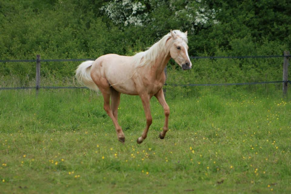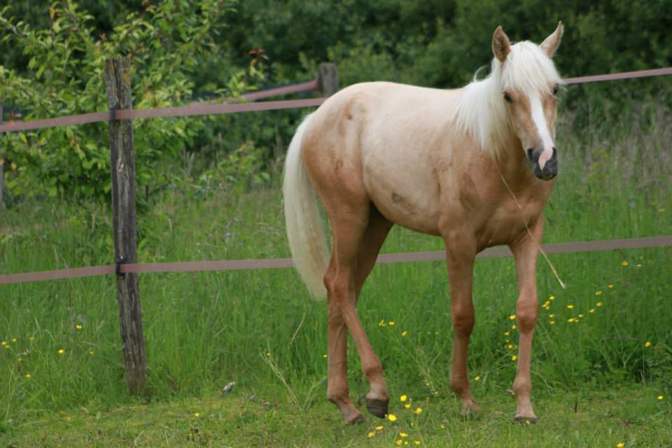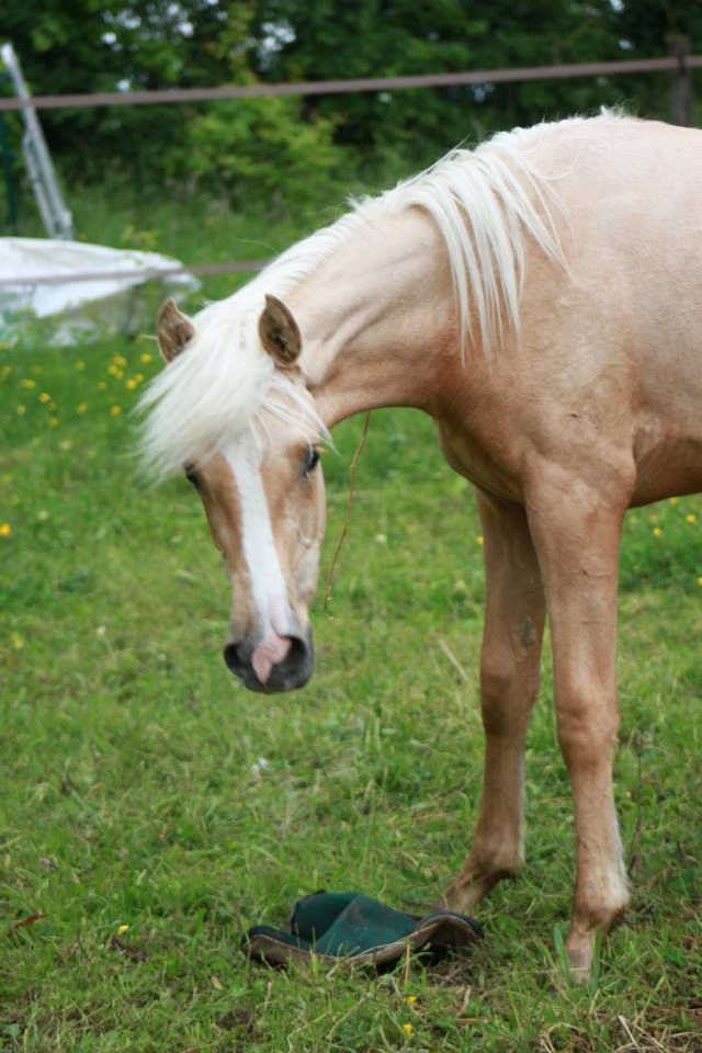 | Dire merci | et que ce soit une pouliche pie palomino |