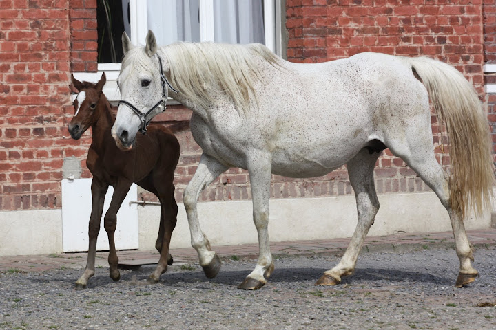 | Dire merci | je confirme, palo fumé c'est un genre de beige foncé à la naissance (c'est grâce à Altaïr62 que je sais reconnaître un palomino grisonnant maintenant car Solist, le papa du prochain poulain attendu au Turel, en a produit un juste récemment et on se posait la question... ) |