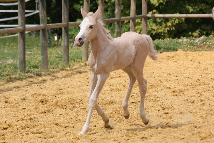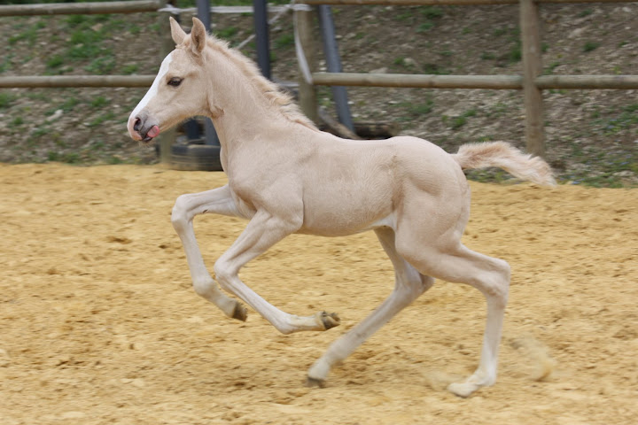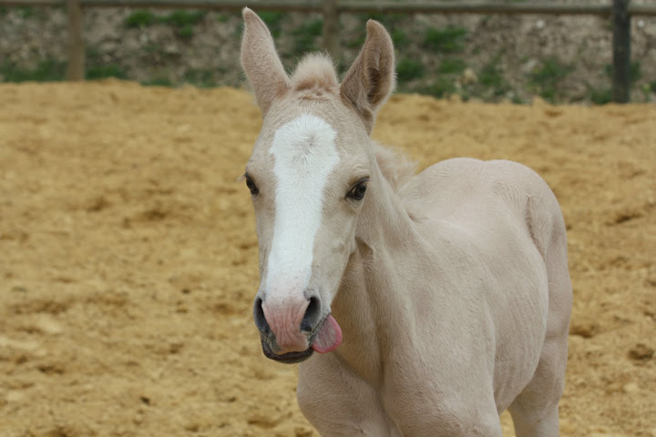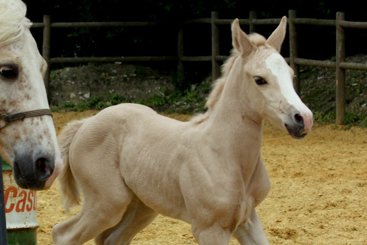 | Dire merci | le petit frère est palomino grisonnant .... d'où cette nuance de robe .... leur demie-soeur : Aloha du Châtelet (Vic Altaïr x Swann de Fly) |