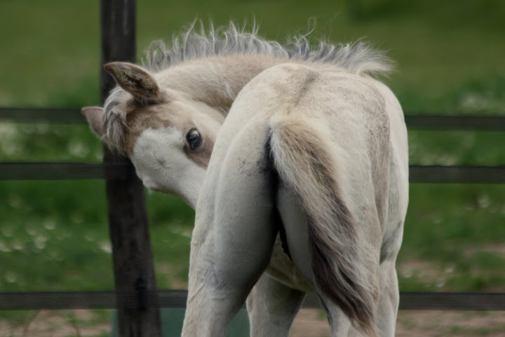 | Dire merci | quelques petites photos prises hier de Atout d'Enzo, mâle DSA pie isabelle overo (avec une couleur toute particulière, car on le croirait délavé, comme s'il avait passé trop de temps dans le jus) mais un vrai pot de colle ! |