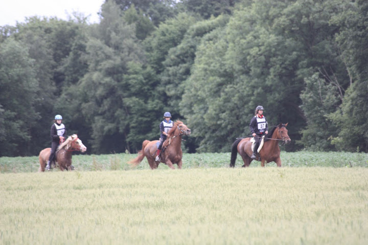 | Dire merci | 2ème course endurance pour stetson.... 1er vet FC à 36.. allures ok ![]() 1er point d'assistance.... Tout va bien !!! Stetson est avec deux juments... Sahar l'alezane et la bai qui elle court sur une 40 kms mais je ne sais pas son nom... ![]() Les voilà repartis... ![]() 2ème point d'assistance... la cavalière de stetson reste à distance car l'alezane a le cul léger par moment... ![]() ![]() ![]() 3ème point d'assistance... pas de photos une averse s'est pointée...et puis nous devions garder sahar et stetson pour que la bai puisse partir devant.... pas la même distance donc pas la même vitesse, les notres avaient pris pas mal d'avance sur le temps.... v'là tout les 2 derniers kms le terrain était pourris donc ils ont fini au pas tranquillement... Vet final... FC à 46 bcp de vent ça a perturbé le loulu... allures ok... donc qualifié le pépére Merci à diane sa cavalière |
