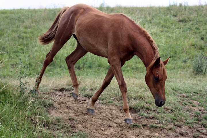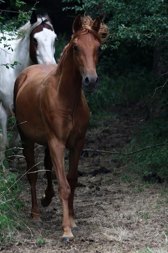 | Dire merci | des petites photos de Venetto du Menphis, mâle CS de 1 an par Bessy III (CS) par Effendi II (AC) Venetto est le seul poulain zain d'Altaïr .... ça change ! ![]() |